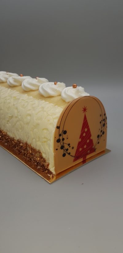 Biscuit citron, biscuit joconde, insert crémeux citron, mousse citron, sablé amande, glaçage citron